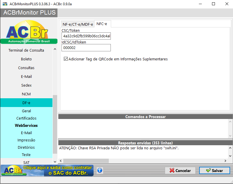CSC (Token) emitido pela Sefaz ( Tem que atentar pelo fato de ter um CSC para homologação e um para Produção );