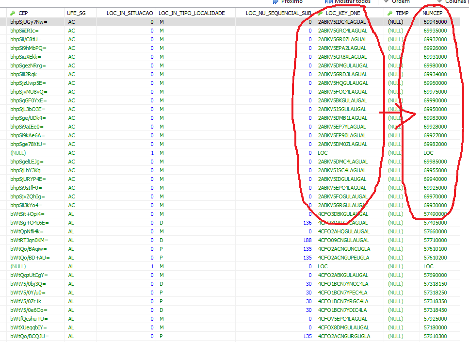 o CEP criptografado...