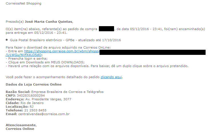 Arquivo original dos correios.