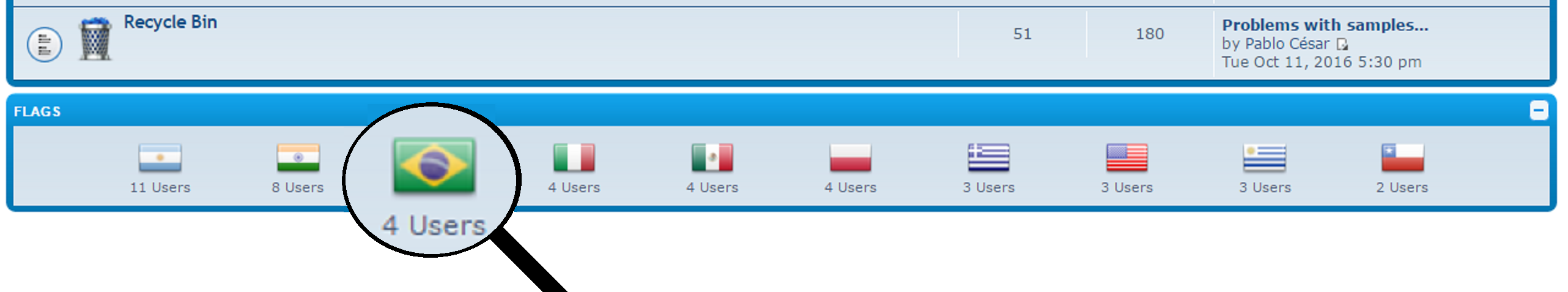 Creio que seja questão de configurar quem já está cadastrado no painel de control do próprio fórum e não definiu a sua bandeira.
