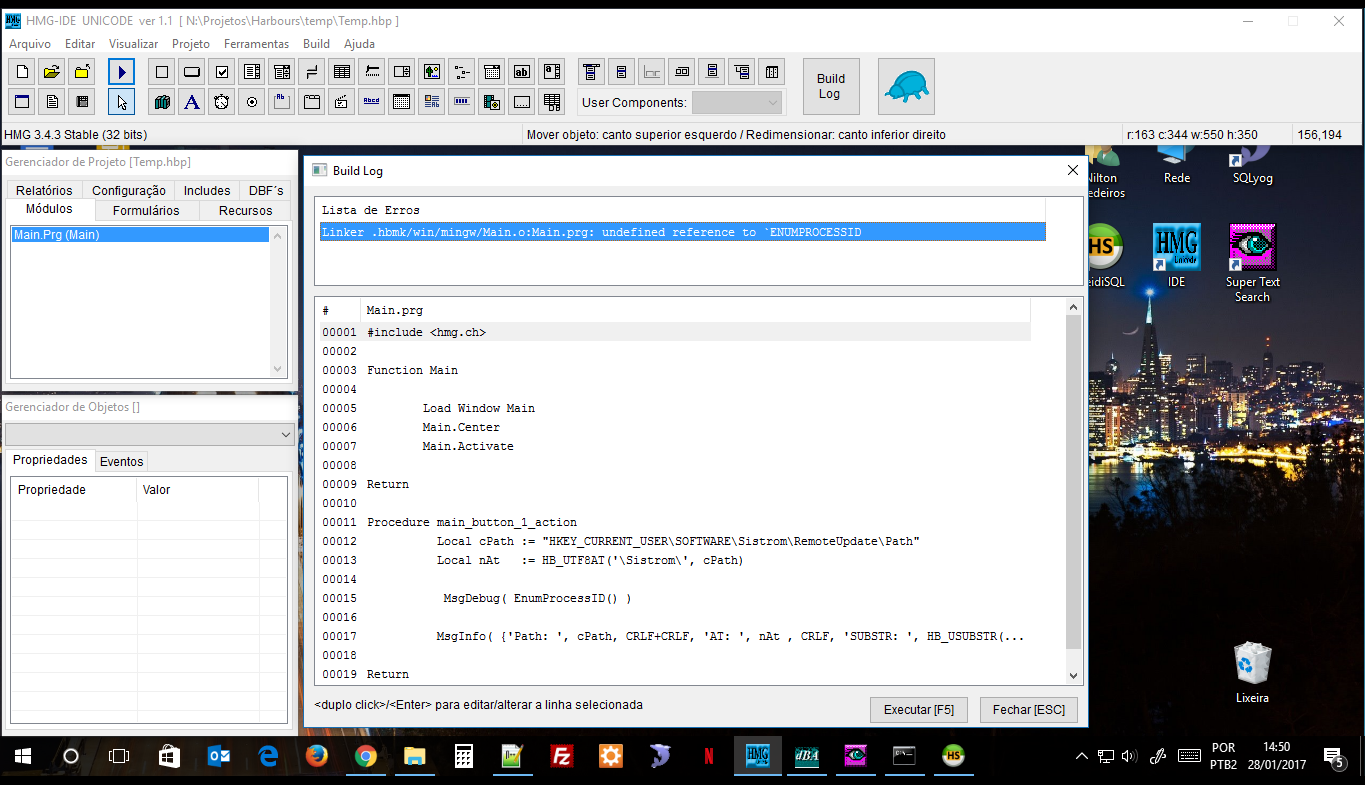 Exite alguma função do Harbour para verificar se um aplicativo ou processo está rodando na memória?, Hoje eu consigo saber se o meu próprio executável já está rodando para não abrir outra estância usando o velho truque de criar um arquivo txt e travar ele deixando-o aberto enquanto rodo o aplicativo, uma outra estância do mesmo aplicativo tenta deletar este arquivo se exitir, se não conseguir sabemos que uma estância deste aplicativo já está rodando, mas e quando queremos saber de um terceiro aplicativo se está rodando? Como ler (pegar) do Windows a lista de processos ativos?