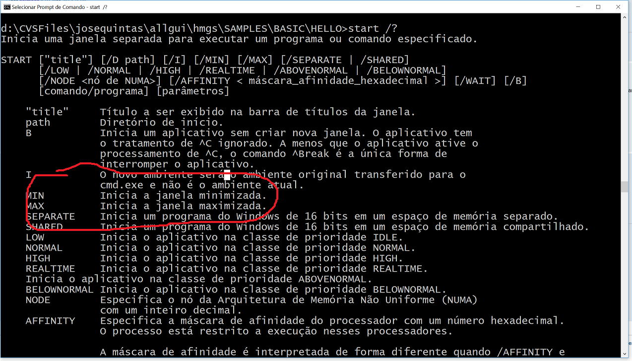 so olhar as opções digitando s t a r t / ?