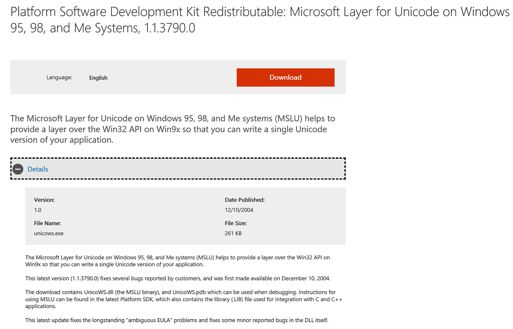 Isso do unicows.dll é pra Windows 98 e anteriores.