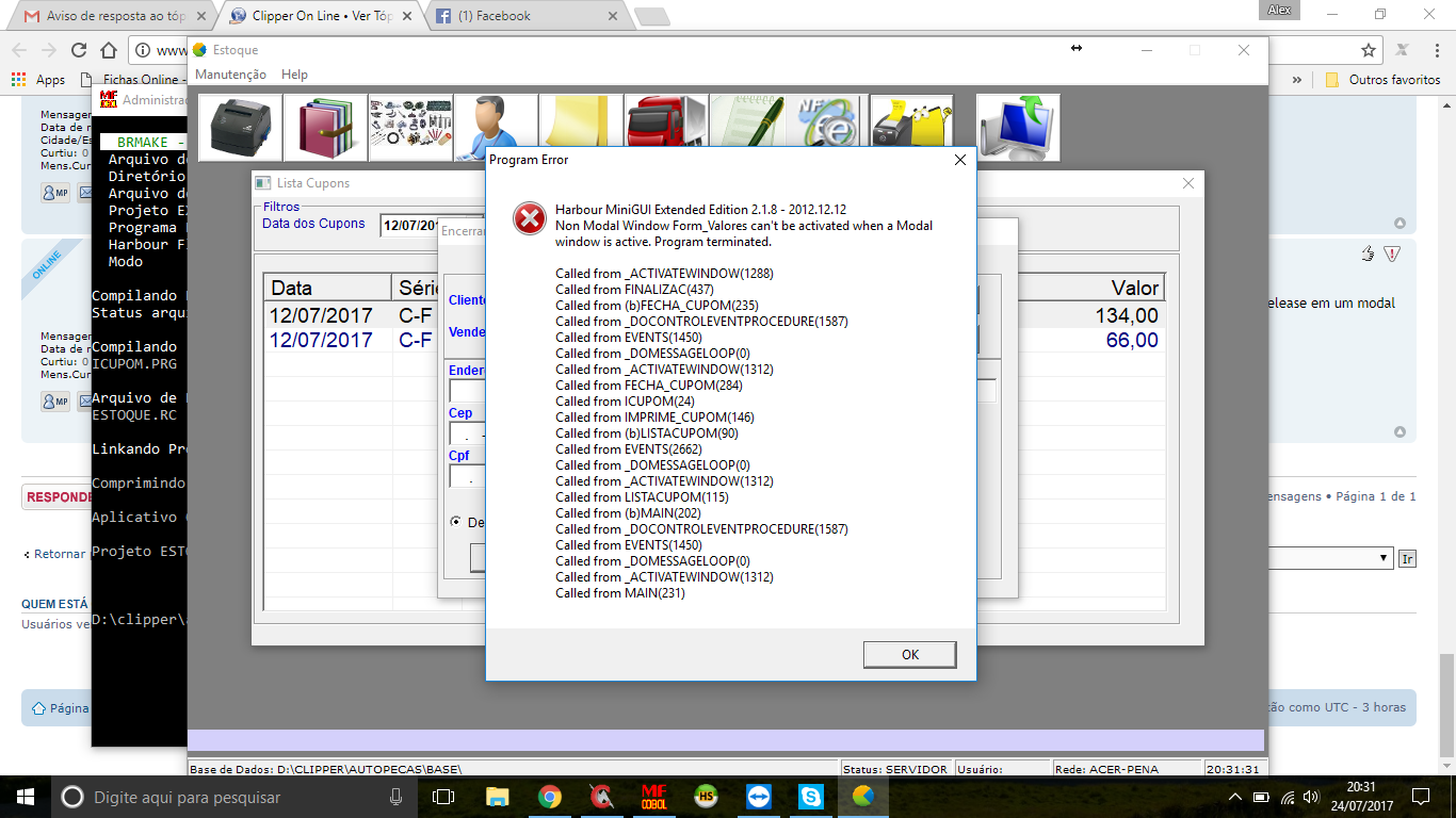 e funcionou perfeitamente, só no programa ae ele chama outro form, para mostrar o valor total, deixar o usuario informar o valor pago, para mostrar um troco, ae que nao funciona mais, ele abre o form tudo normal, dae eu ao inves de imprimir o cupom, chamei um