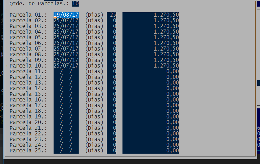 Aproveitei pra acrescentar a primeira parcela que era separada.