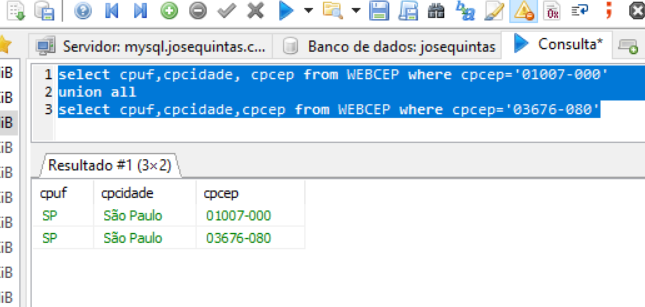 select cpuf,cpcidade, cpcep from WEBCEP where cpcep='01007-000'