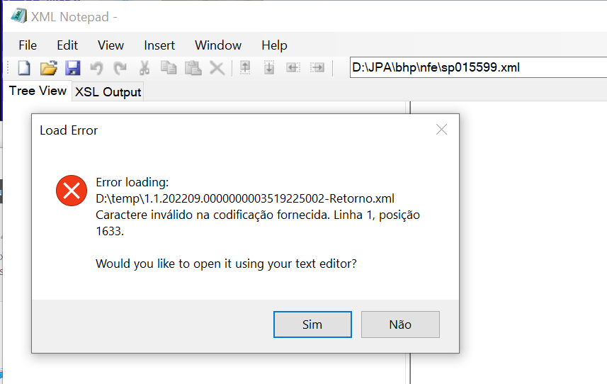 MsgStop('Não foi possível carregar o documento pois ele não corresponde ao seu Schema'+HB_OsNewLine())
