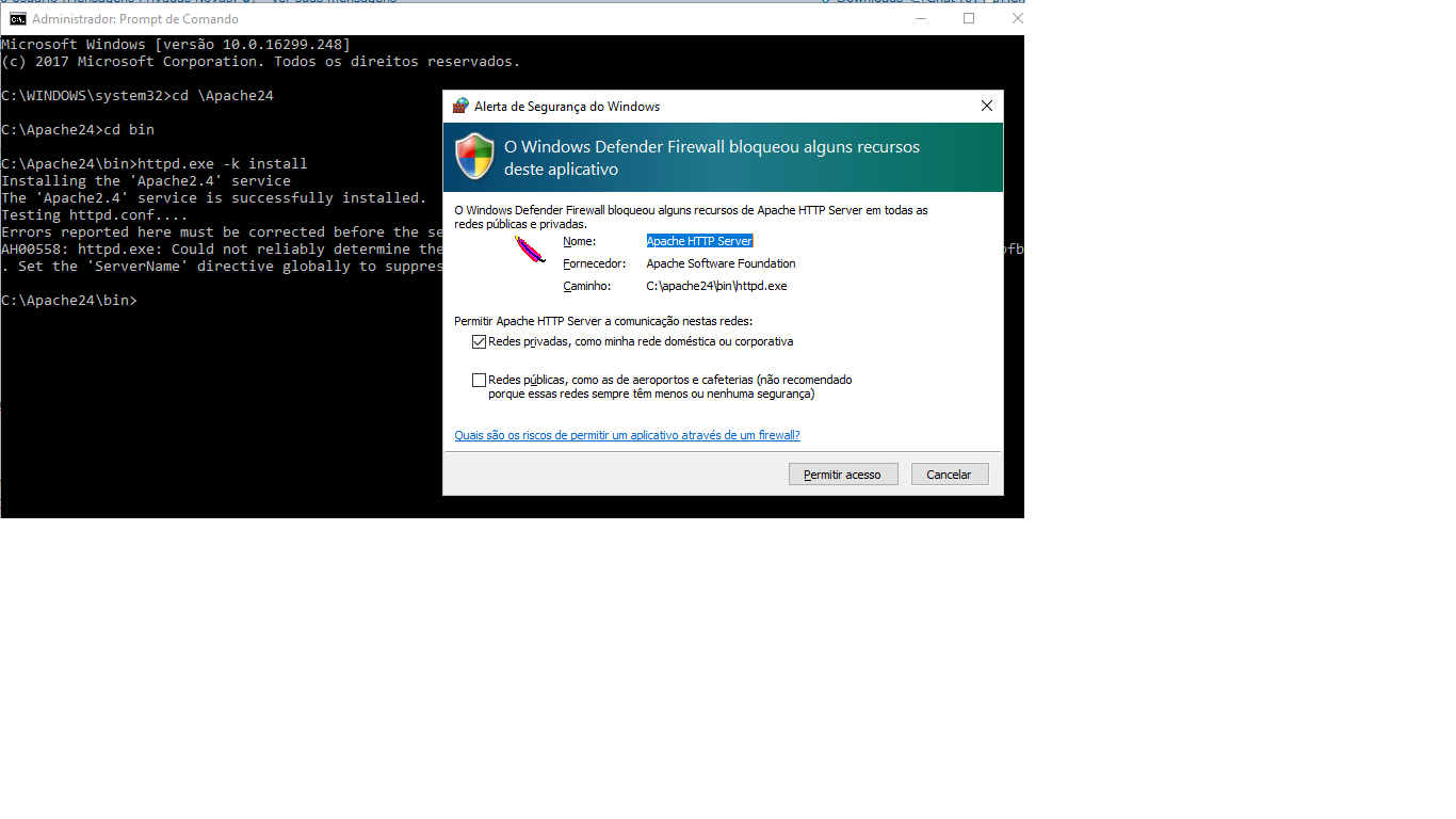Para instalar o apache como serviço no windows: