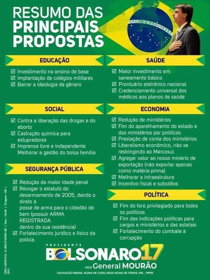Esse homem que não mente, divulgou o seguinte programa de governo , que é suficiente pra definir o voto de todo mundo que quer um Brasil voltando aos trilhos da ordem , do progresso, da moral e dos boons costumes