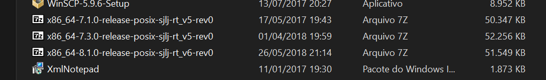 A instalação do mingw que já usei e uso