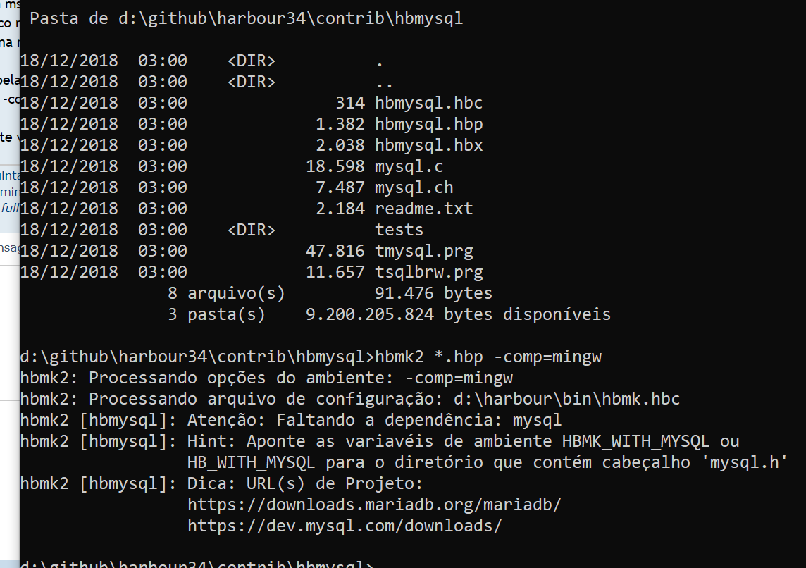 hbmk2: Dica: Instale o pacote hbmysql e adicione as opções 'hbmysql.hbc'