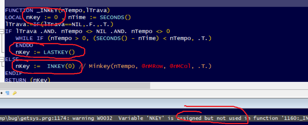 getsys.prg:1178: warning W0032 Variable 'NKEY' is assigned but not used in function '1164:_INKEY'