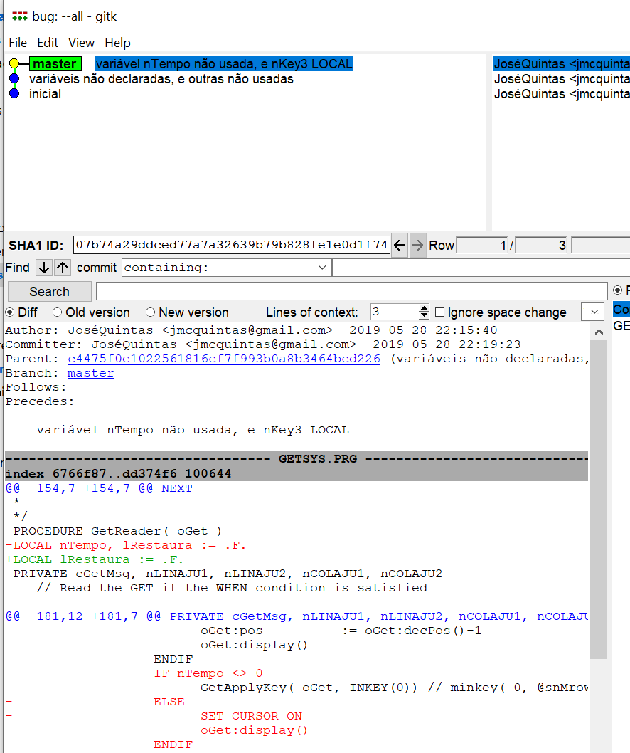 Como salvei cada mudança separada, dá pra ver aí cada conjunto de mudanças.