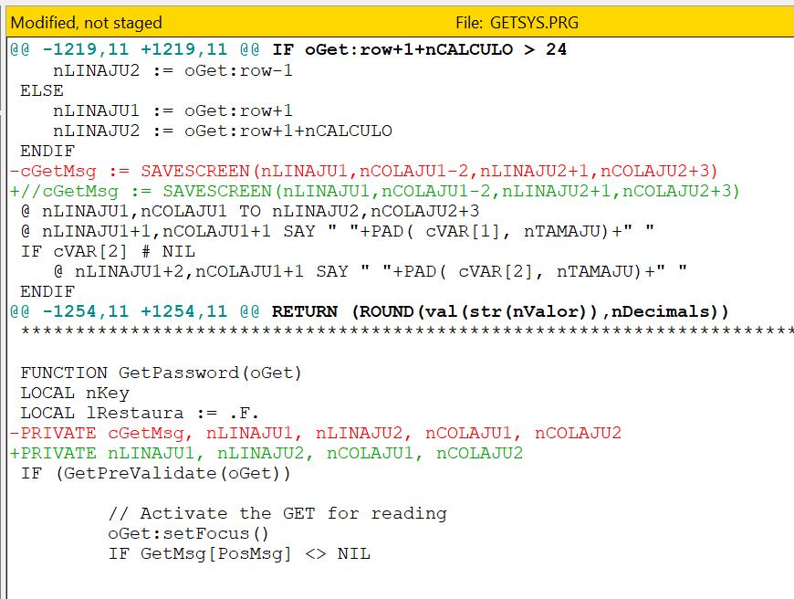 No anterior já chama a atenção a variável cGetMsg porque aparece uma única vez, sinal de que deve ser inútil. Se fosse útil apareceria mais de uma vez - criação e uso.