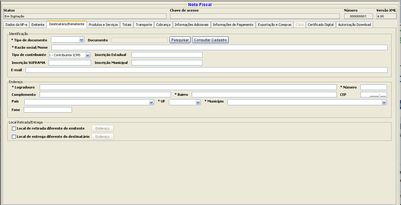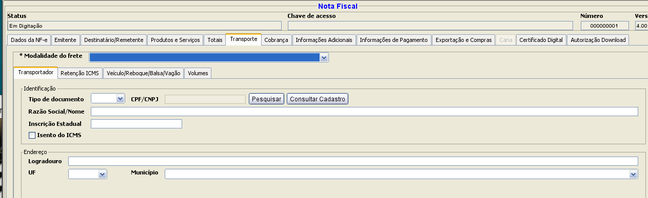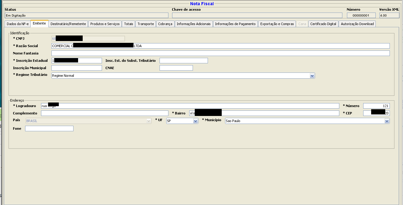 Lembrando: Estas telas são do emissor de NFE do Sebrae em 30/05/2019, deverão ser diferentes até o final do ano.
