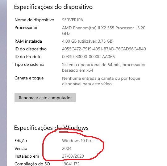 O meu windows é 1903