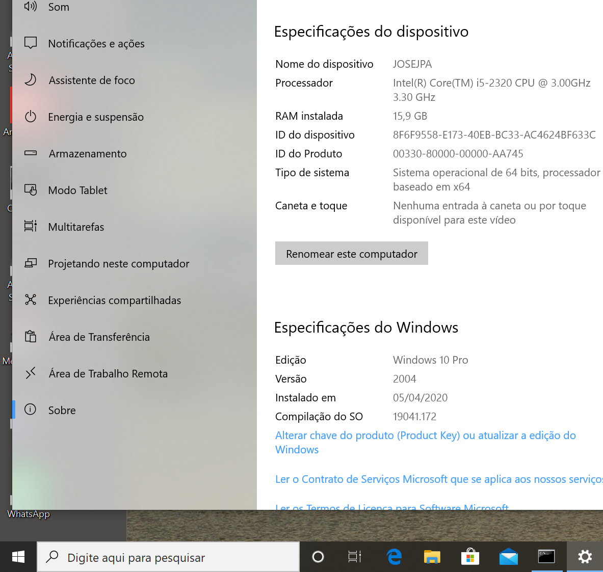 Note que o post indica 19041.153, anterior à que tenho aqui.