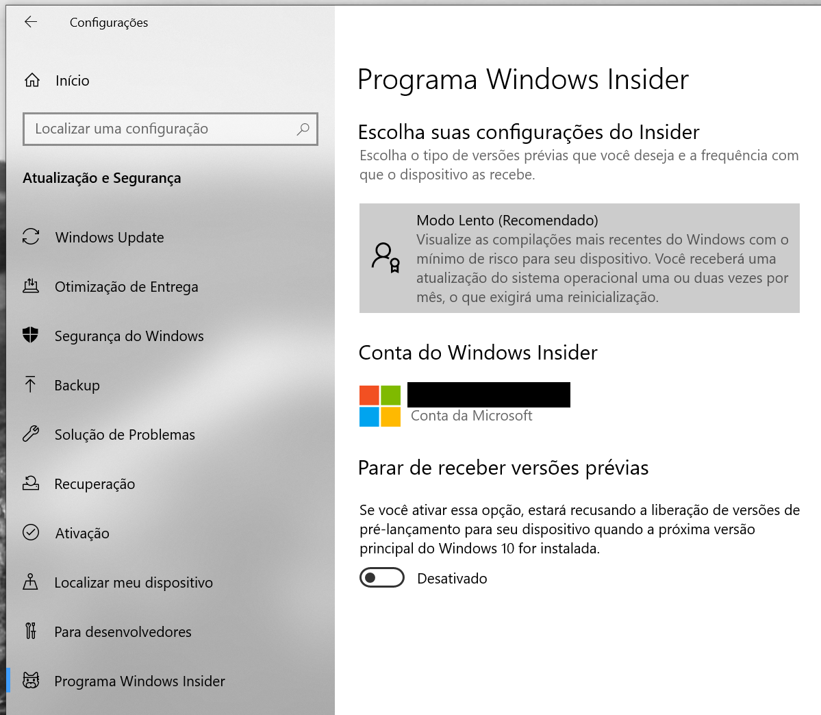3) tem essa insider lenta, que diz instalar uma ou duas atualizações por mês, é a mais "estável", porque