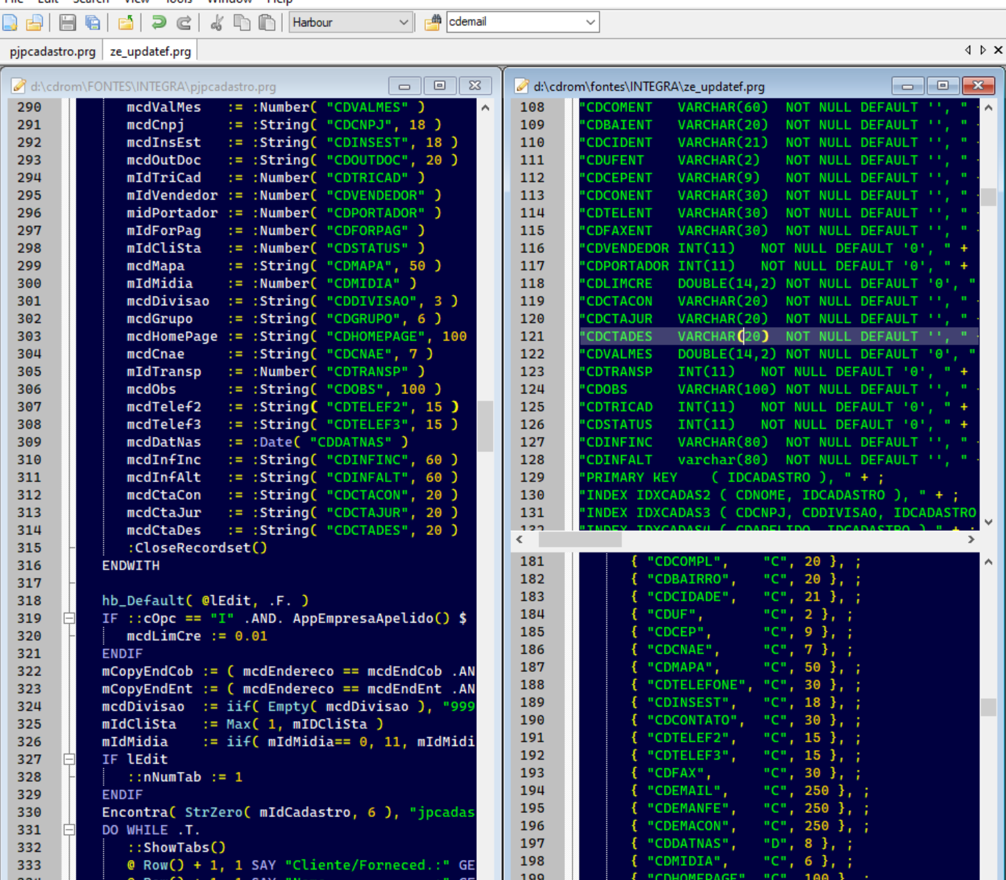 Ola, estou estudando sua técnica para agilizar minha migração, primeiro obrigado pela contribuição. No caso do update no mysql, você faz a clausula com todos os campos ou apenas os campos que tiveram alteração ? isto não ficou claro para mim.JoséQuintas escreveu:Alterando o fonte propriamente dito: