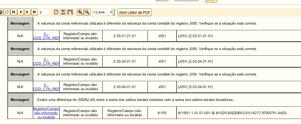 Ou o erro é porque ainda não coloquei as contas referenciais?