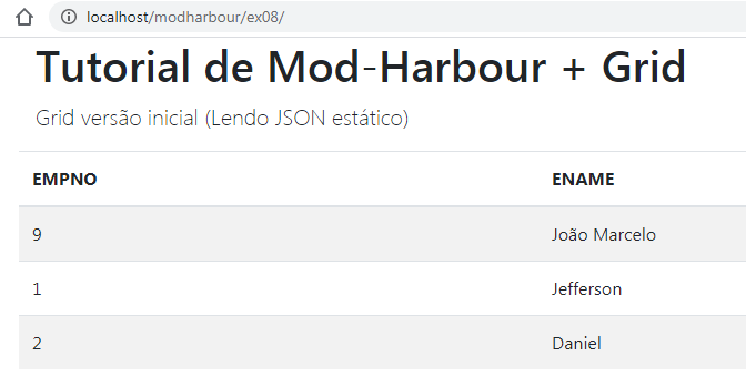 O objetivo dessa etapa é criar um grid usando AJAX e com paginação.