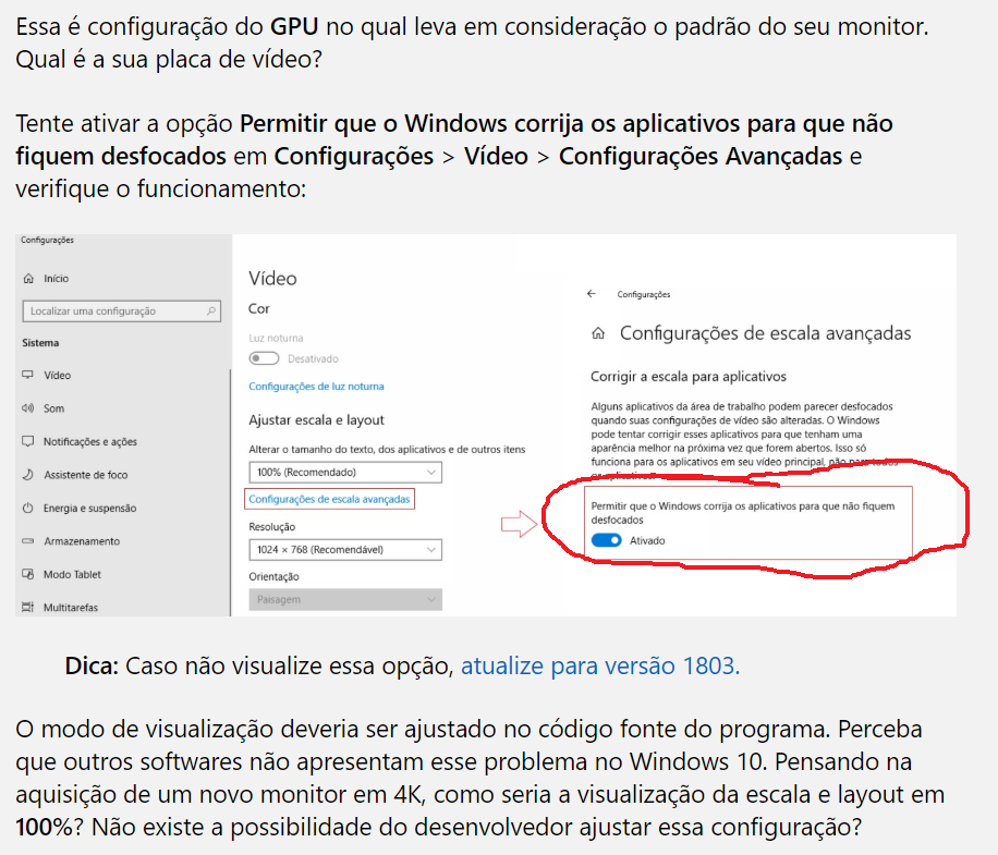 O Windows usa ampliação 150%