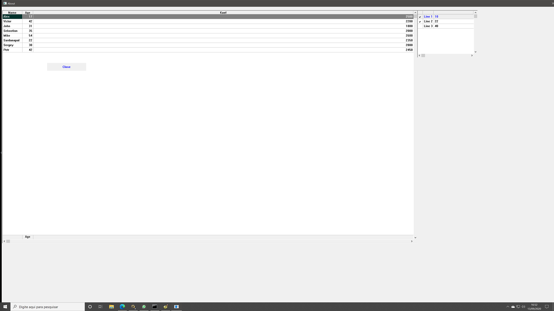 Essa janela do FIVEWIN pode ser facilmente criada na HwGi, o problema são as dimensões das janelas, como quintas observou, posso ter uma tela com mais de 1920 / 1080 sem esculhambar os componentes?, a respota ainda é não no meu notebook chego a 1600 x 900 sem perder as dimensões, se for 1920 x 1080 fica tudo zoneado, um exemplo é a grid