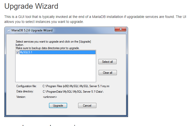https://mariadb.com/kb/en/upgrading-mariadb-on-windows/Since MariaDB 5.2.6, the Windows distribution includes tools that simplify migration between different versions and also allow migration between MySQL and MariaDB.