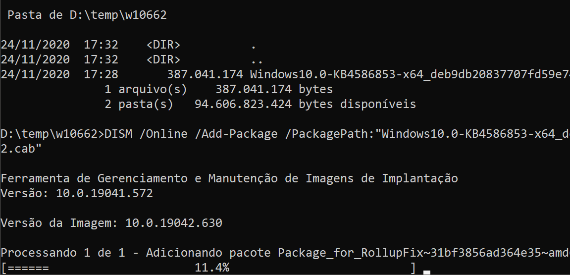 Hoje as duas máquinas atualizaram pra essa 19042.630.