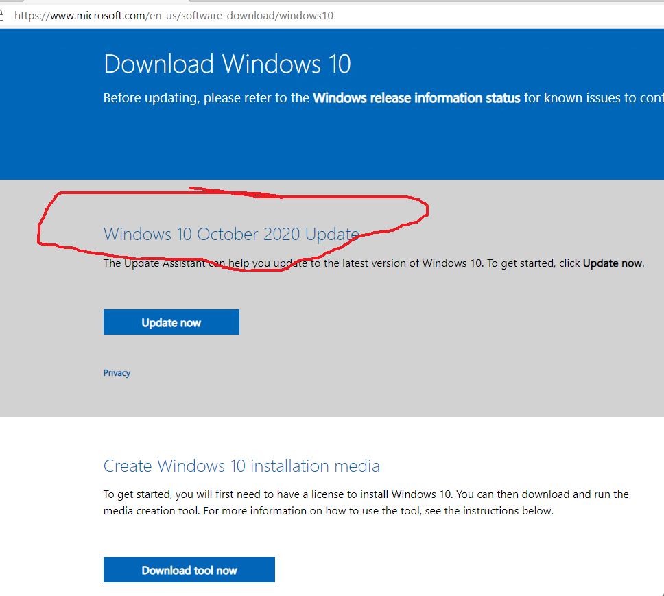 Esquisito, mas a versão do Windows deste mês se define como W10 20H2.