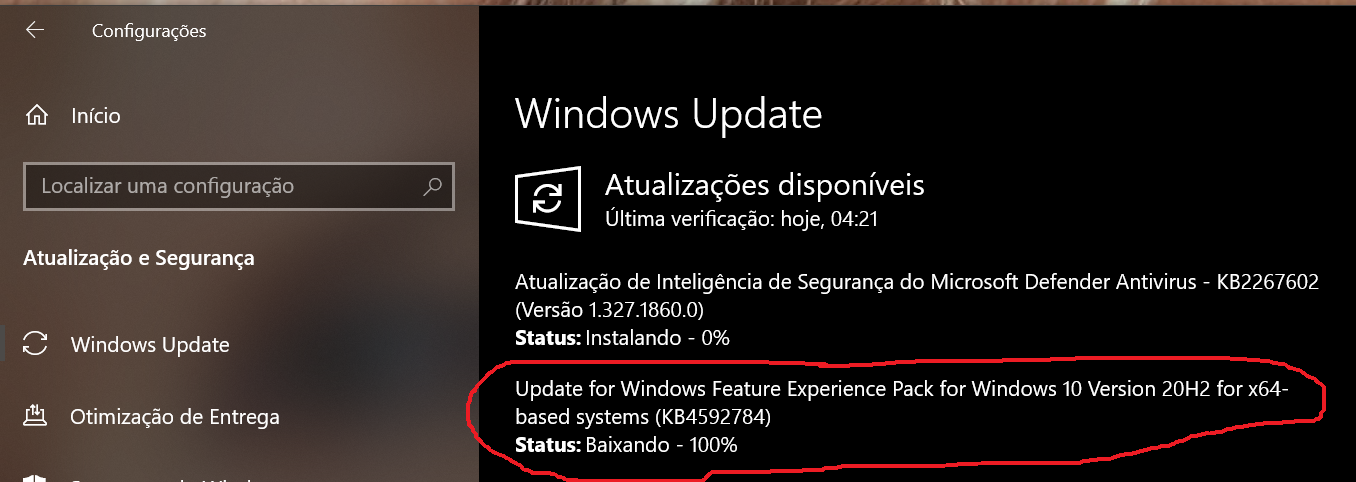 Hoje entrou atualização pra 20H2 19042.630