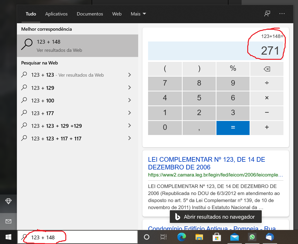 Acima, só digitei a soma na barra de pesquisa