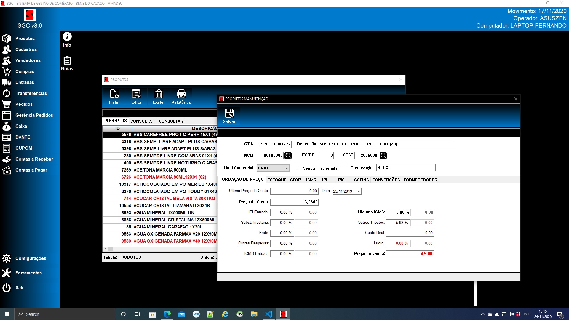 HARBOUR 3.2, HWGUI 2.23 B7, SEFAZCLASS, PDFClass, ADO + MariaDB/MySQL, RMChart, Python + FASTAPI , Android Kotlin