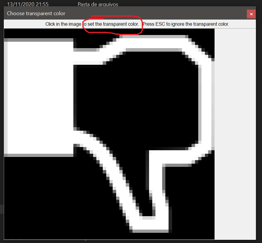 Aqui por exemplo, transformei uma imagem 500 x 500 num ícone 500 x 500, e selecionei o preto pra ficar transparente.