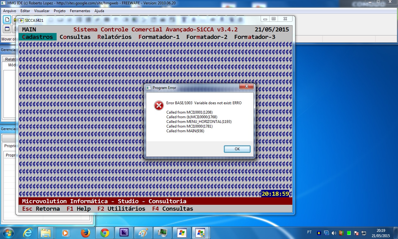 Mas, quanto ao ERRO2 V.Sa. não fez comentário do que possa ser, ele ainda continua aparecendo no momento da compilação (F5 da HMG). O que pode ser?