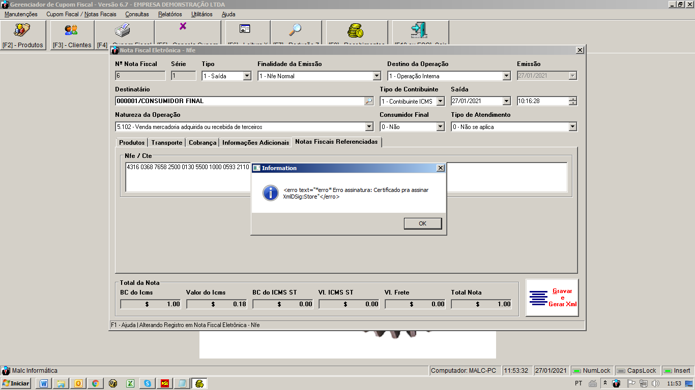 Debugando ao programa ze_sefazassina.prg verifiquei que ele aborta na seguinte linha :