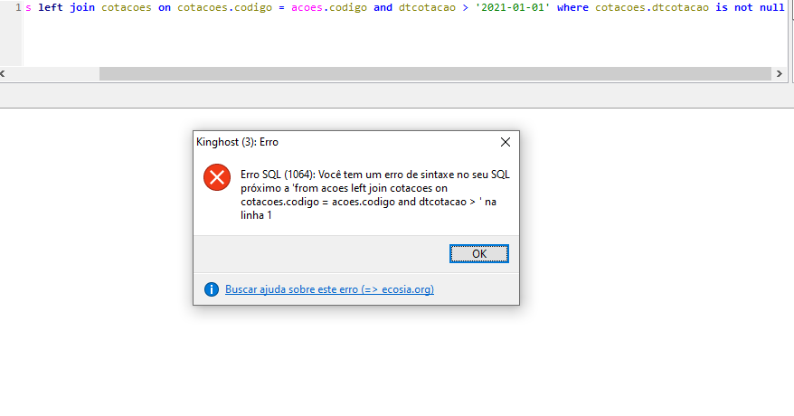 left join cotacoes on cotacoes.codigo = acoes.codigo and dtcotacao > '2021-01-01'
