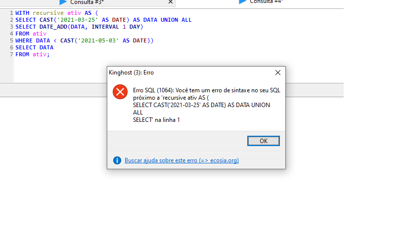 Desta forma, se você deseja usar CTEs em seu sistema, tem que usar uma versão de SGBDR que suporte esta funcionalidade. Se você for instalar o sistema