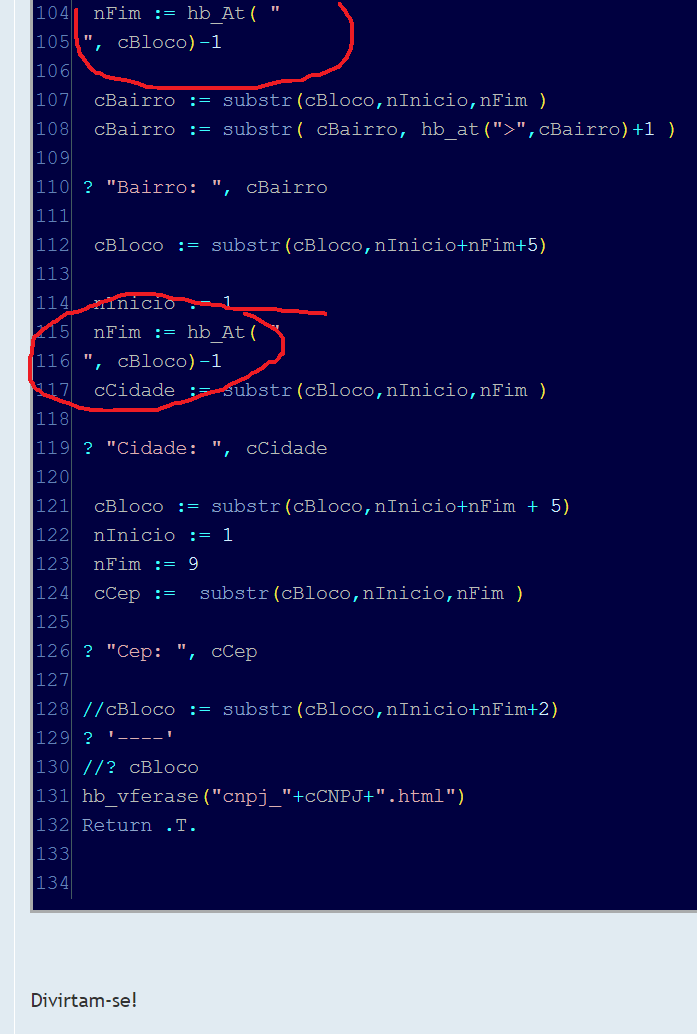 nFim := hb_At('<BR>', cBloco, nInicio)  - nInicio