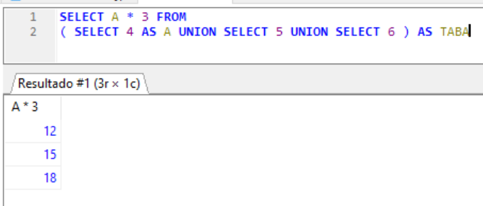 ( SELECT 4 AS A UNION SELECT 5 UNION SELECT 6 ) AS TABA