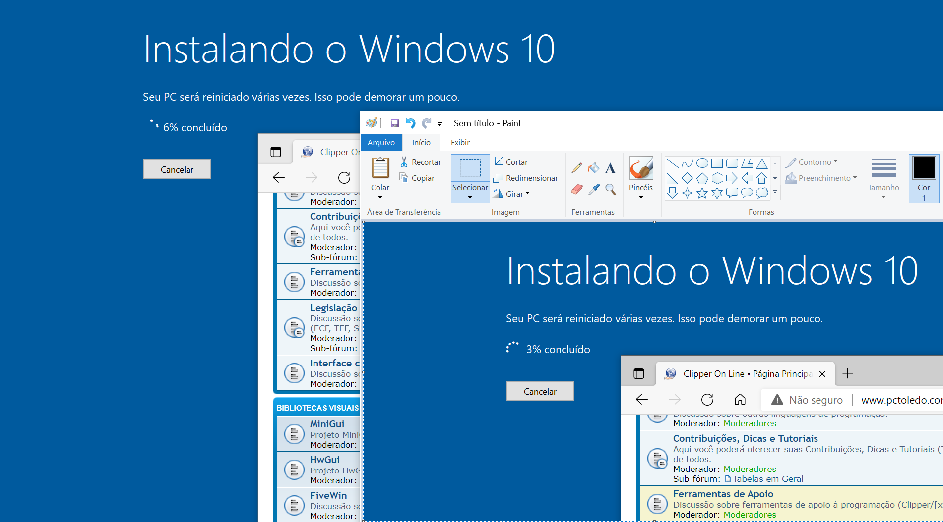 O Windows acabou voltando a instalação anterior.
