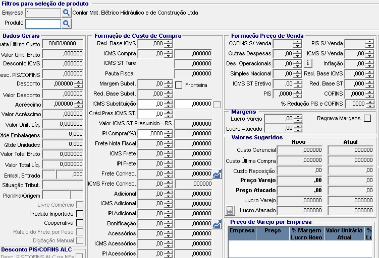 É isso, só para ver algumas telas, tenho uma aqui cheia de variáveis, vejo que na prática ninguém usa. Veja essa tela cheia de penduricalhos, a pessoa que me mostrou nem usa a metade p/ calcular preço.Mas acho que o Itamar se refere à composição do preço.