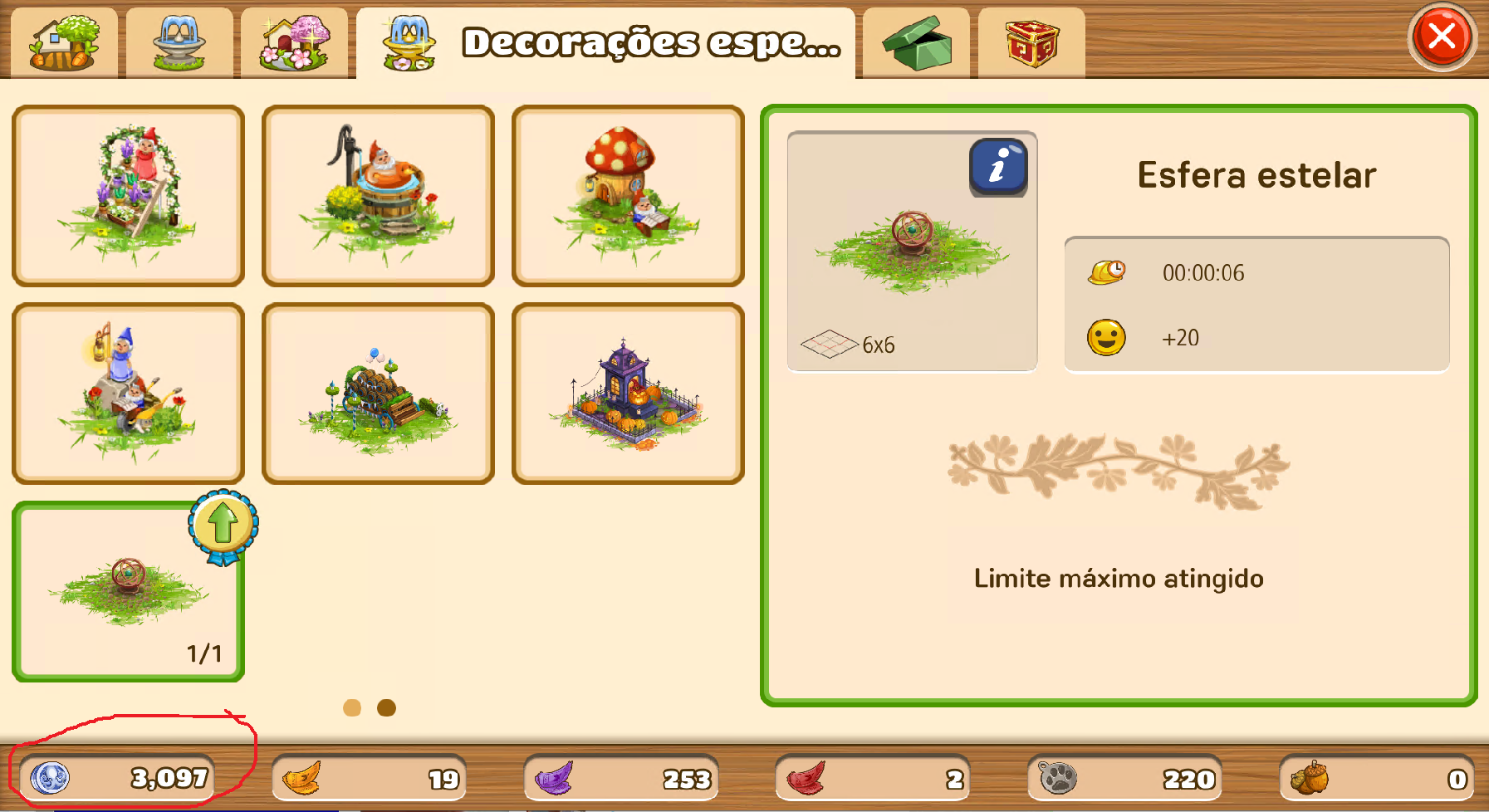 Existe esse, que pode ser aumentado usando as moedas azuis.