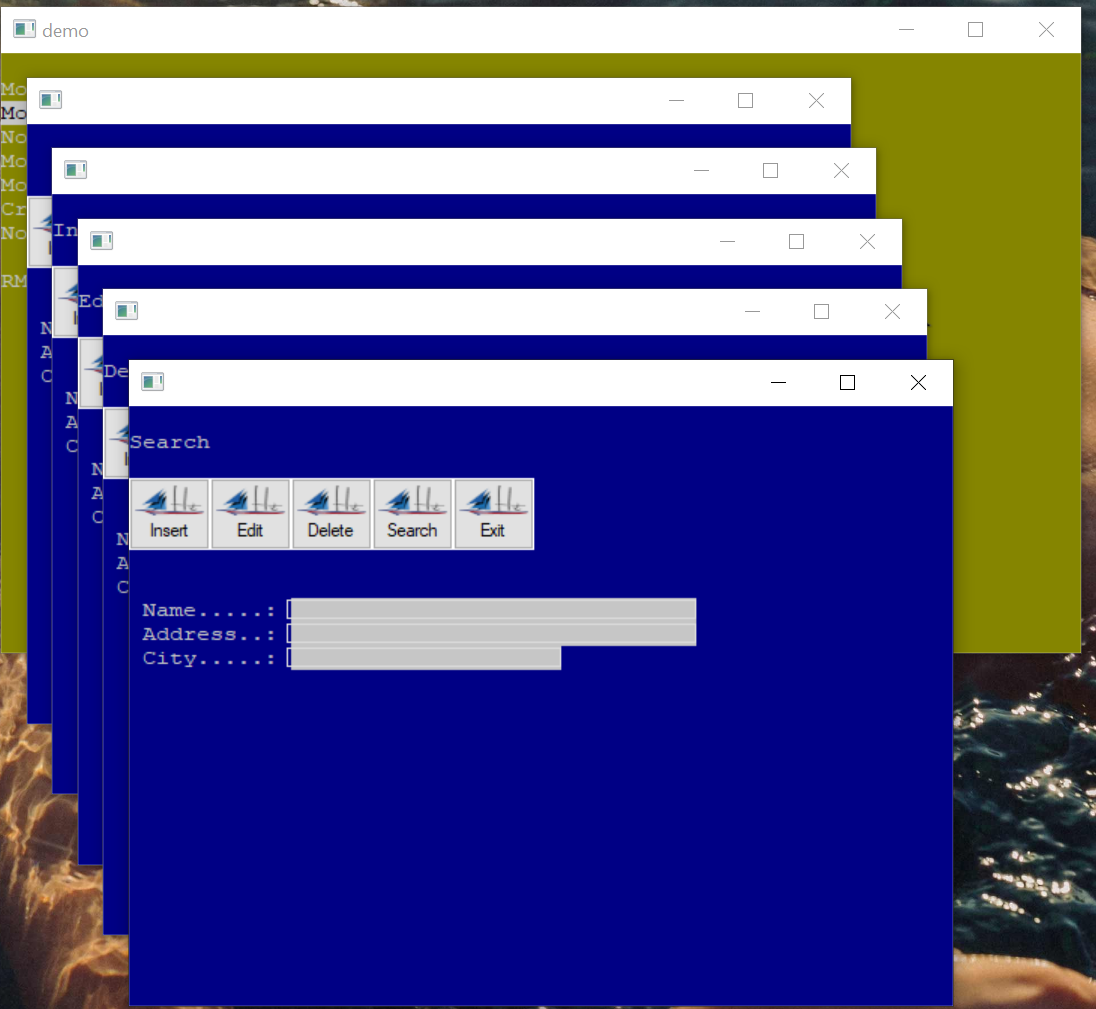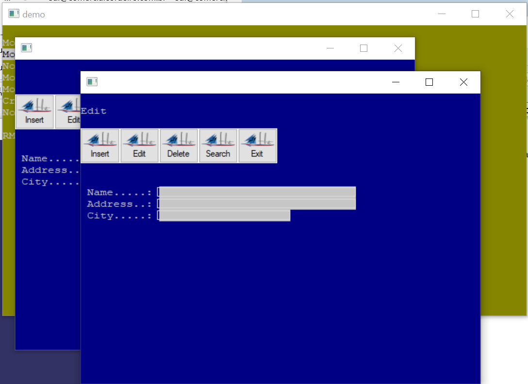 Esse usa o que seria uma LIB GUI, sem reaproveitar janela, e controles windows.