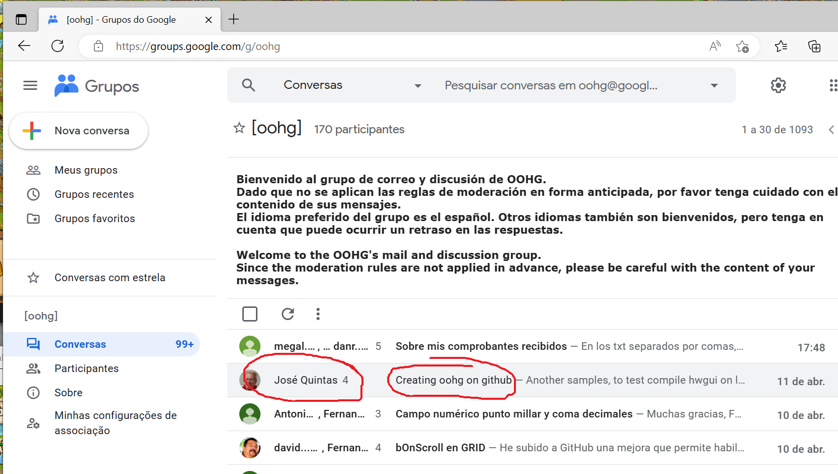 Eu sei que o grupo de OOHG é em espanhol, mas via github já conversei com o Fernando em inglês e ele preferiu dessa forma.