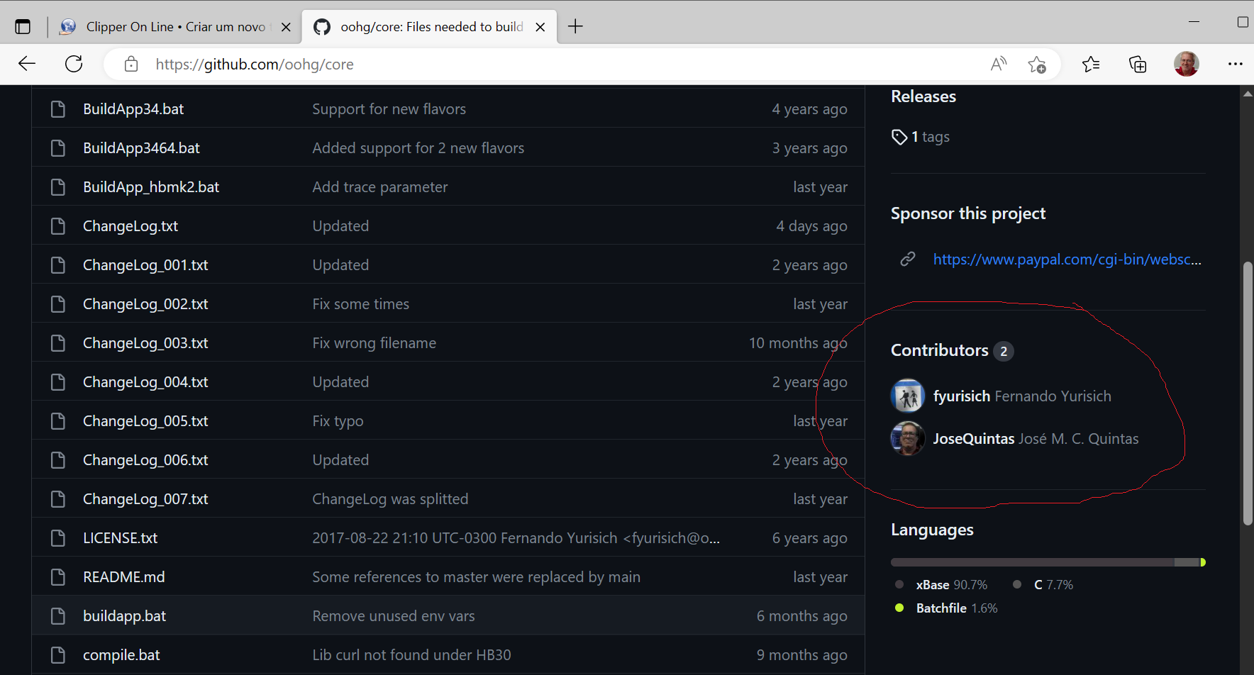 Eu estranho meu nome aparecer aí, no github da OOHG, mas deve ter considerado uma boa ajuda.