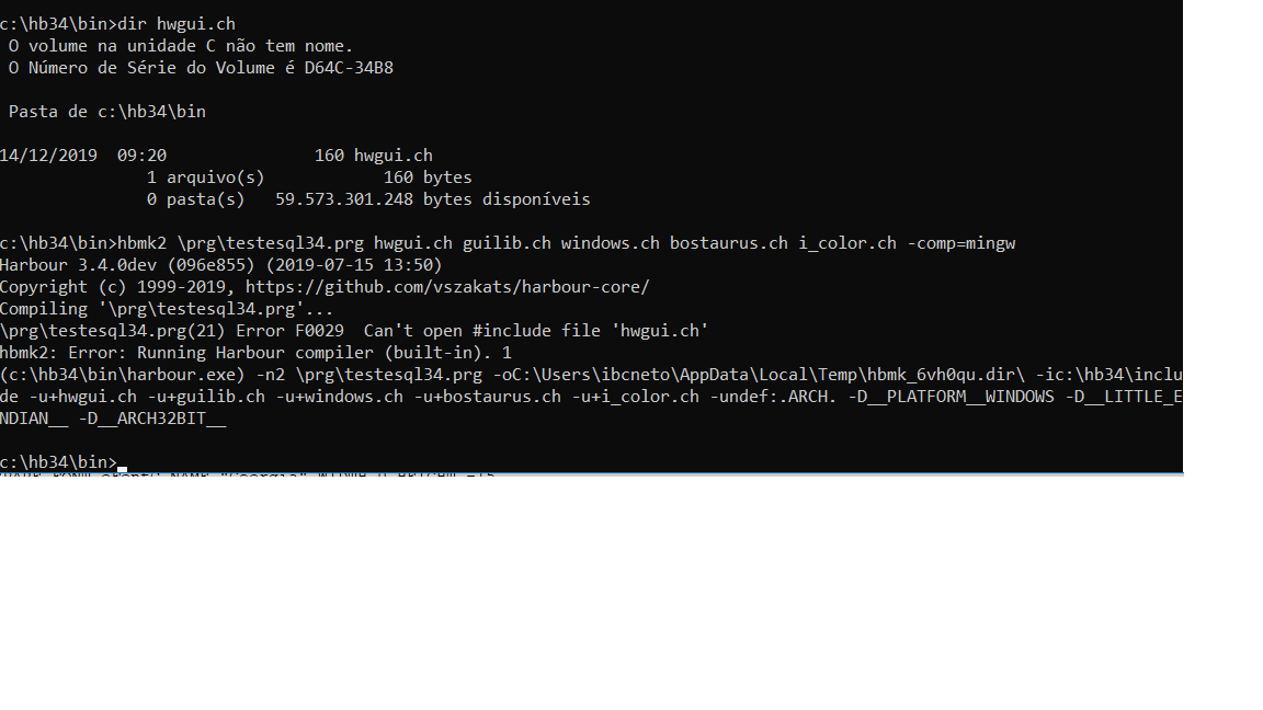 OBS: Os arquivos chamados pelo comando "#include" são procurados primeiro na pasta do projeto, se não tem, são procurados pelo Harbour na pasta include.