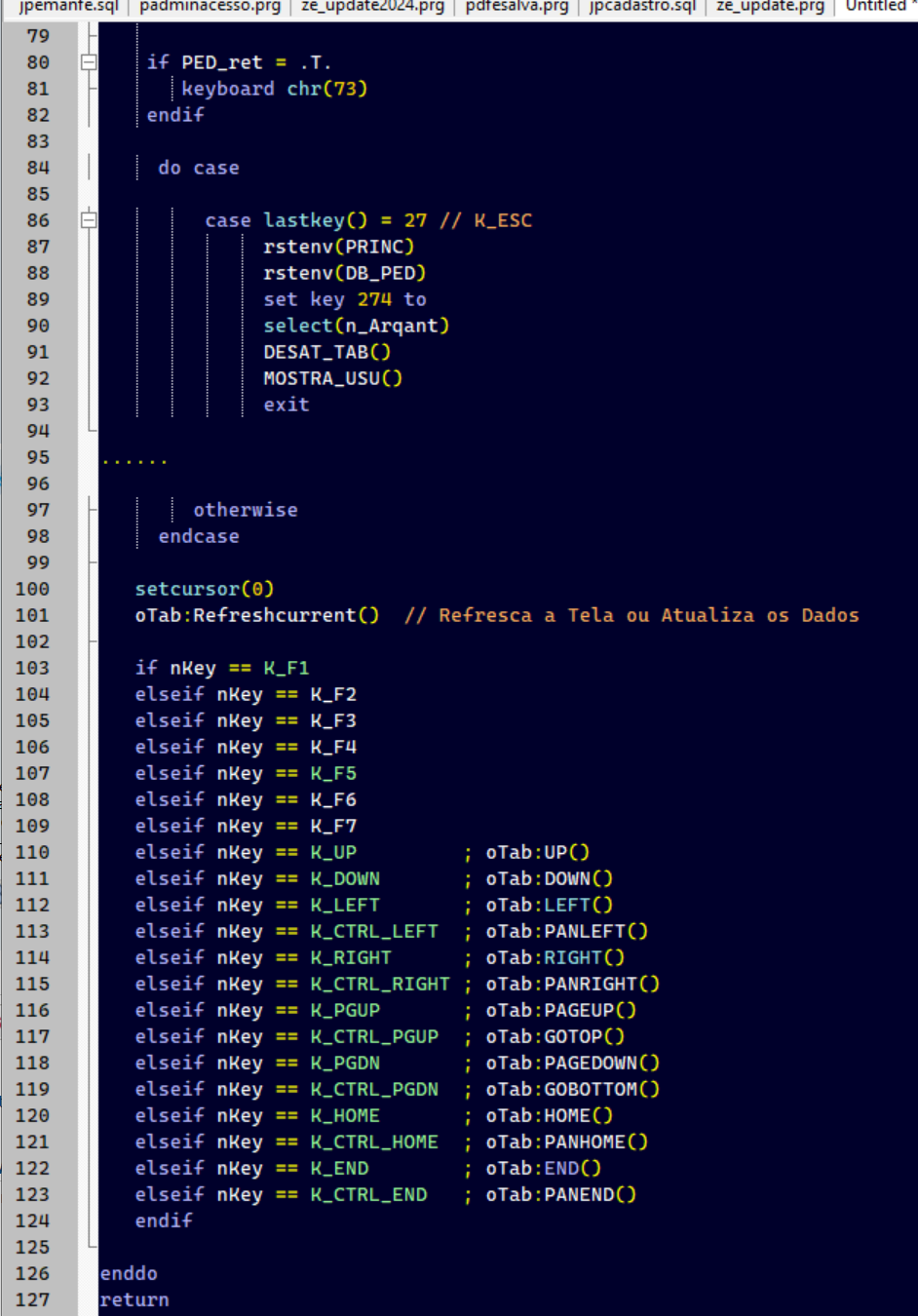 Oi Zé .. acho q vc não entendeu o problema .. registro acompanha a movimentação do browse está correto!! ... o q acontece é q quando estou com a base de pedidos aberta (PED.DBF) em um browse ... e entro alterando o pedido, que abre outra base de dados (TMP.DBF) teoricamente e independente de eu movimentar-me dentro da browser de itens do pedido que está dentro do TMP.DBF .. e retornar pra tela anterior (PED.DBF) o ponteiro deveria estar no mesmo local até porque não movimentei ele com nenhum comando... entende ?? isso q acontece .... se altero e me movimento dentros dos itens do pedido para baixo ... quando voltou para a tela de pedidos .. o ponteiro se movimenta 3 pedidos acima ... ele sai da posição atual ... e isso nunca passou em clipper e nem em xbarbour .. porque voltei e compilei com xharbour e funciona perfeitamente ... só em harbour 3.2 ... é muito raro!
