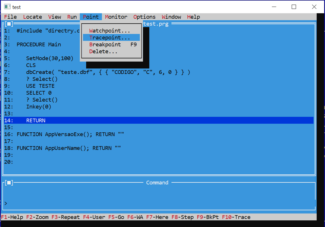 Watch point, é pra ficar acompanhando alguma variável, por exemplo recno() de pedido ou número de pedido.