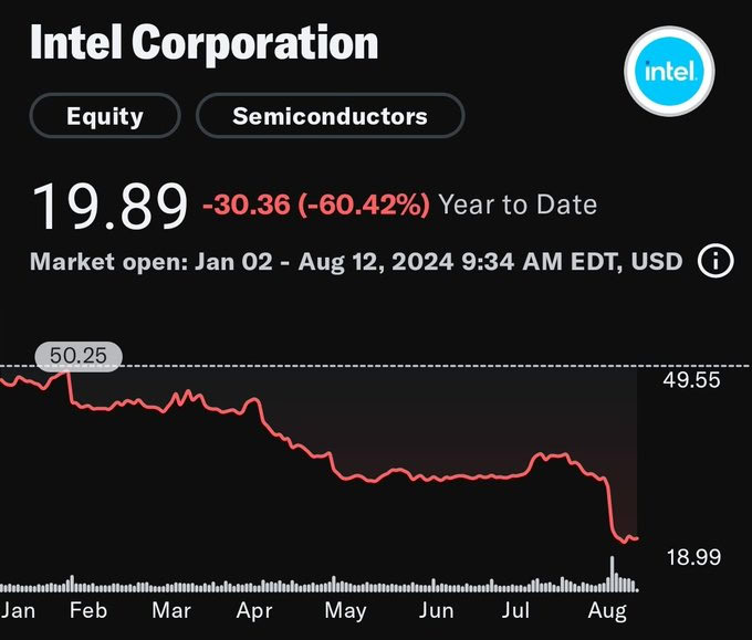 Saudações,A Intel está literalmente sendo negociada pelo valor de liquidação (valor contábil tangível).